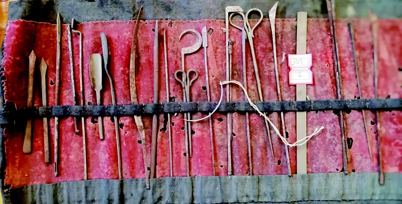 吴润生说,郎中们在行医过程中,一般用马皮卷起来包裹工具,随身携带,用的时候再打开,用火烧或开水蒸煮的方式消毒,之后进行手术。