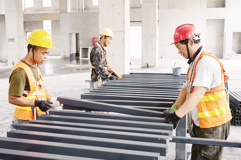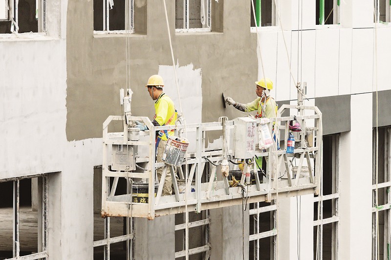 切割、喷漆、抹灰、安装门窗……现场,机械轰鸣作响、运输车辆不断、人员穿梭忙碌,共同构筑一幅火热的建设景象。“一阶段第一标段7栋混凝土厂房外墙保温施工全部完成,窗框安装全部完成,外墙真石漆喷涂完成50%;第二标段9栋混凝土厂房二次结构砌筑全部完成,外墙真石漆喷涂完成30%,窗框完成15%,屋面完成20%,防火门、楼梯扶手等内部安装完成20%。”现场施工负责人介绍,园区项目(二期)占地面积约540亩,规划总建筑面积约53万平方米。