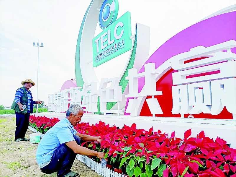 从8月29日到9月4日,短短一周内,潇河新兴产业园区总计完成土地平整130万平方米,种植草坪草皮6万平方米,摆设120组花厢,制作4个精神堡垒造型,对小牛线至山西潇河国际会议中心更换更新围挡5000米,此外还完成了先行路、姚村规划路的亮化景观提升,确保太原能源低碳发展论坛在安心、舒心、顺心的环境中举行。