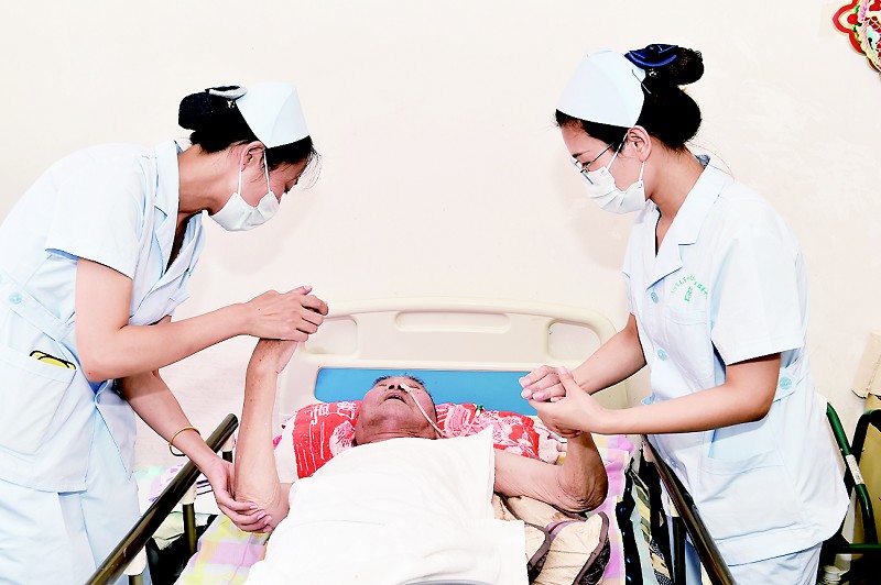 作为山西省首批医养结合试点单位,长治市第二人民医院医养结合护理院目前已形成医、养、康、护、娱全面融合的新型养老模式,让入院老年人感受到家的温馨。这里集医疗、养老、康复、护理、保健、安宁疗护为一体,院区设置床位200张,设置医疗专护区、生活照护区两大业务区;设有康复理疗区、娱乐活动区、营养膳食区等多个配套功能区;配有完善的医疗急救、保健康复等设施200余台(套)。“咱们一起做五指操,活动活动。”在医疗专护区507房间里,96岁的李爷爷按照护士口令,双手重复握拳、伸开动作。听到护士夸奖他做得好,老人脸上露出了微笑。