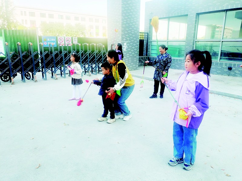 简单分组后,任惠琴和社区工作人员手把手教授孩子们如何正确舞动“火流星”。虽然掌握转动技巧绝非易事,但孩子们没有轻易放弃,不断尝试将沙包绳索舞动得更灵活。