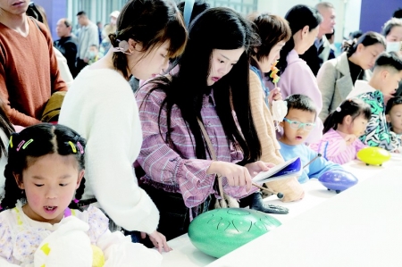 10月22日,“一带一路”文创馆内,参观者络绎不绝。空灵鼓展台,被参观者围得里三层、外三层。这个看似简陋的乐器,可以让音乐零基础的参观者,对照简谱敲击出疗愈人心的天籁之音。