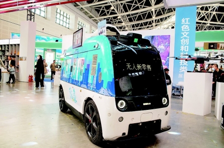 阳泉,一座典型的煤炭资源城市,是全国闻名的“煤城”。如今,以人工智能为驱动的新一代智慧城市,正成为阳泉的新“名片”。阳泉展区内,一辆无人驾驶零售车成为“显眼包”。车内,十二生肖挂件、中共第一城文创礼盒、《三体》书籍等一应俱全。“只要点击屏幕选择想要买的,扫码支付后即可开柜领取。”新石器智航(山西)科技有限公司工作人员介绍,这款无人零售车目前已经应用于无人配送、无人零售、校园服务、城市服务等多个场景。