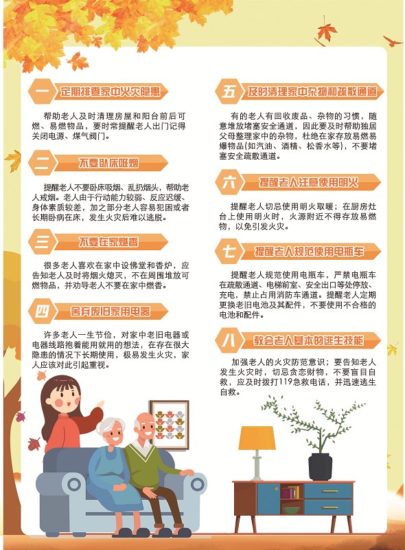 老年人行动能力弱、身体素质差、自防自救能力不足,发生火灾后难以成功逃脱。因此,我们要把以下这些消防知识告诉老人。 记者 张彦 忻州消防全媒体