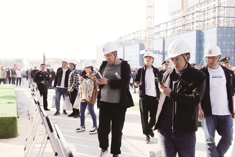 观摩中,来自全区100余家在建工地的300余名代表一边观摩中海寰宇项目施工现场扬尘防治情况,一边听项目负责人介绍现场管控、扬尘防治措施,纷纷拿出手机和笔记本,及时将学到的经验记录下来,对标样板找自身差距与不足。大家在观摩中互相学习,共同提升。