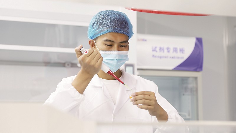 在“智慧央厨”的生产区,每个环节都是智能化控制,工作人员身着蓝色消毒防护服、一次性口罩、帽子和白色胶鞋,经过智能测温,然后进入风淋间,吹去身上的尘土与毛发,最后洗手、消毒后进入各自的生产区域。