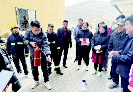 工作人员现场演示了灭火器的使用方法,指导居民按照正确的步骤和方法,科学灭火。在应急疏散演练过程中,消防救援人员引导居民正确使用湿毛巾捂住口鼻弯腰走安全通道自救逃生。