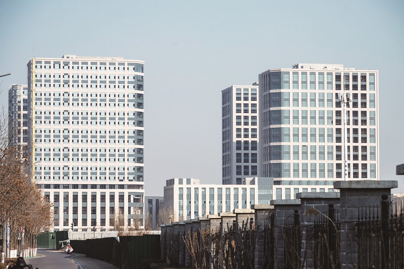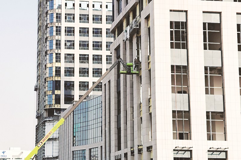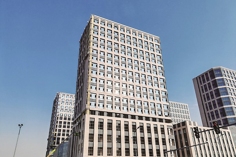 现场,几十个不同工种的工人在多个区域进行安装施工。“公寓楼外墙安装完成96%、玻璃安装完成99%,3栋写字楼的玻璃马上全部装好,室外回填土完成99%、雨污水管道完成100%。”汾飞集团建设开发公司项目现场负责人表示。