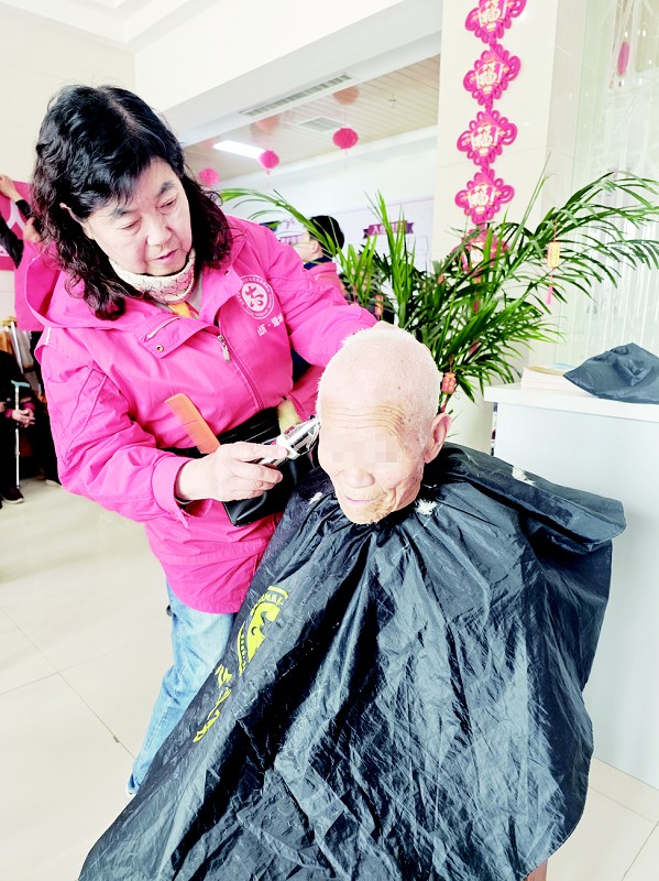 66岁的退休教师张玉梅,是银龄志愿者中的一员。她选择的献爱心方式是为老年人理发。为了给老年人理出满意的发型,她自学理发技术,并向专业理发师请教,一点一点提升理发技术。