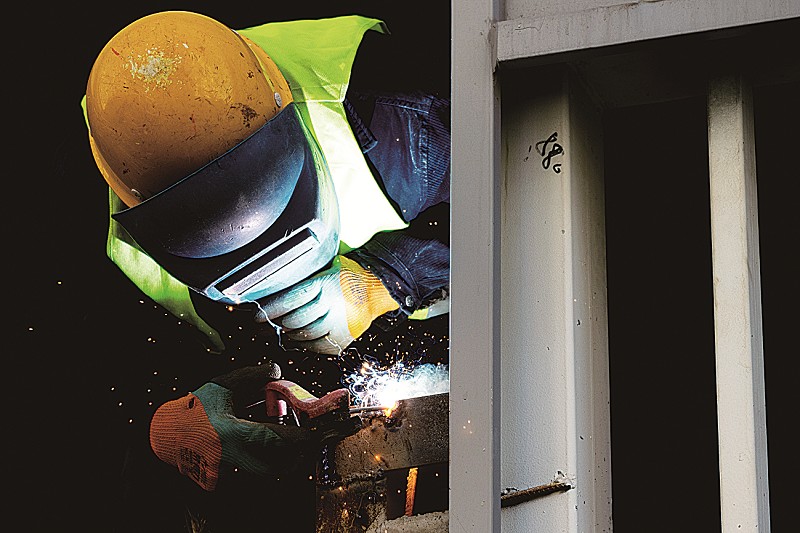 3月18日,在山西转型综改示范区优鲜多歌消费品工业特色产业园二期建设现场,建设者正在推进二次结构施工,钢筋碰撞声、混凝土浇筑声与起重机械的轰鸣交织成春日奋进交响曲。“注意水平校准!”一位技术工人紧盯着激光水平仪,发出精准指令,工人们迅速调整安装角度。不远处,一位焊工戴着防护面罩,手持电焊枪在钢梁连接处“绣”出朵朵焊花。
