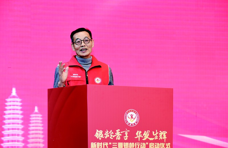 唐代诗人刘禹锡曾写过这样一句诗:“莫道桑榆晚,为霞尚满天。”朋友们!今天我们在这里以志愿者的名义集结,不仅是对银龄行动倡议的响应,还是一次庄严的承诺,更是化“桑榆非晚”的诗意为“老有所为”的时代宣言。让我们携手并肩,继续以微光聚星河,用银发力量书写新时代山西的温暖答卷。