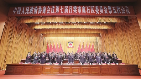 9时,政协第七届吕梁市离石区委员会第五次会议在雄壮的国歌声中开幕。区政协主席白志荣代表政协第七届吕梁市离石区委员会常务委员会作工作报告。
