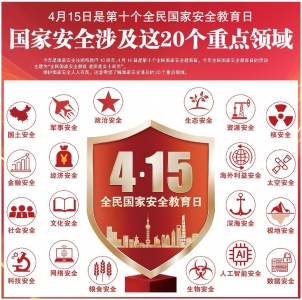 今年是国家安全法颁布施行10周年,4月15日是第十个全民国家安全教育日。今年全民国家安全教育日的活动主题为“全民国家安全教育 走深走实十周年”。
