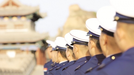 在深夜里丹心值勤,用恪守写就青春的诗行