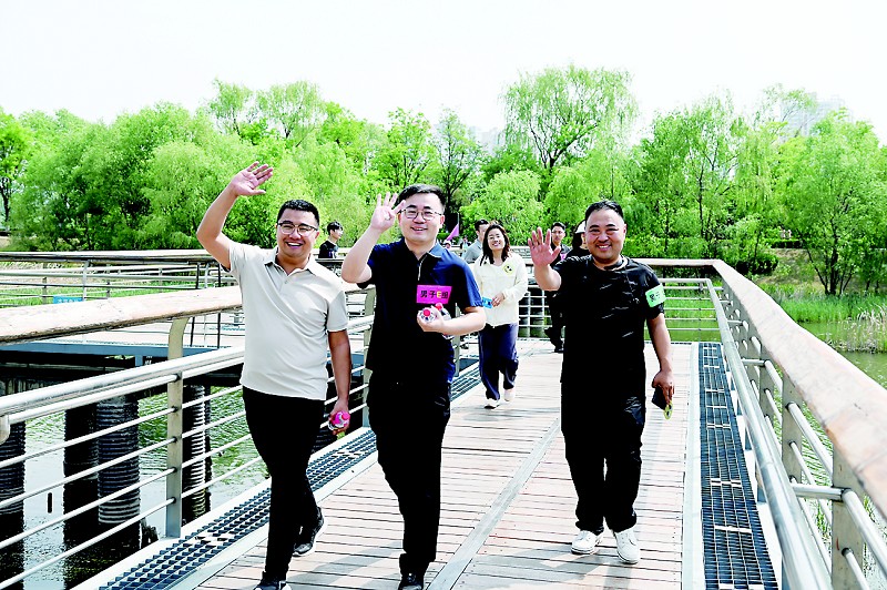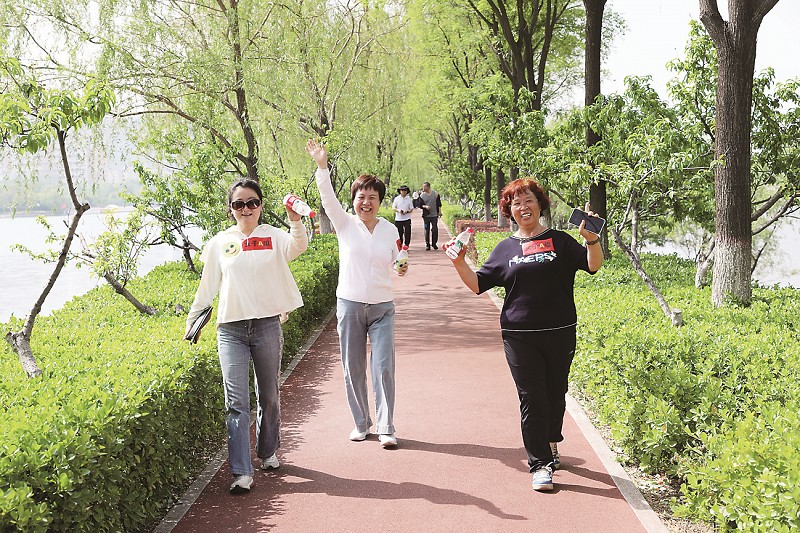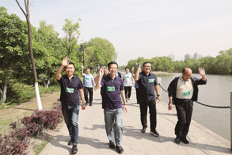 一路上,有疾行如风的活力比拼,有共赴远方的并肩前行,有细嗅花香的徐行笑谈,他们不时地对着镜头比个“耶”!不时地举起手机记录沿途的欢乐花絮,不时地相互畅聊工作生活趣事。河面粼粼波光,垂柳轻拂堤岸。欢呼声、加油声、脚步声交织在一起,处处洋溢着昂扬向上、朝气蓬勃、团结奋进的精气神,形成了一道欢乐跃动的风景线,留下了许多熠熠生辉的温暖瞬间。