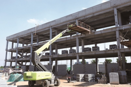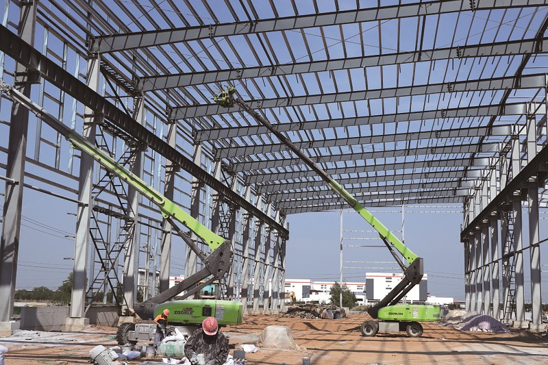 走进施工现场,新建的生产车间和综合楼并排矗立眼前,整个项目已具雏形。生产车间内,工人乘坐升降车,仔细地为钢柱喷涂防火涂料,综合楼二次结构施工也在加紧进行。“按照建设计划,生产车间将在月底进行围护面板安装,综合楼将在6月中旬完成二次结构墙体砌筑。”项目现场负责人介绍,面对近期持续高温的天气,已将工人作业时间改成“早出晚归”模式,通过“干两头、歇中间”错时施工的方式避开正午高温时间段。同时,配备了防暑降温的药品和饮品,在缓解高温作业压力的同时,也为项目正常推进创造了有利条件。