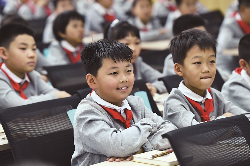 “同学们,你们是智慧的小孩子吗?你们知道写出一个故事,总共分几步?”张旭燕与同学们分享写作的小技巧。正当同学们思考的时候,张旭燕又问:“如果要把一头大象放进冰箱里,总共分几步?”“打开冰箱,把大象放进去,再关上冰箱门!”同学们笑着回答。