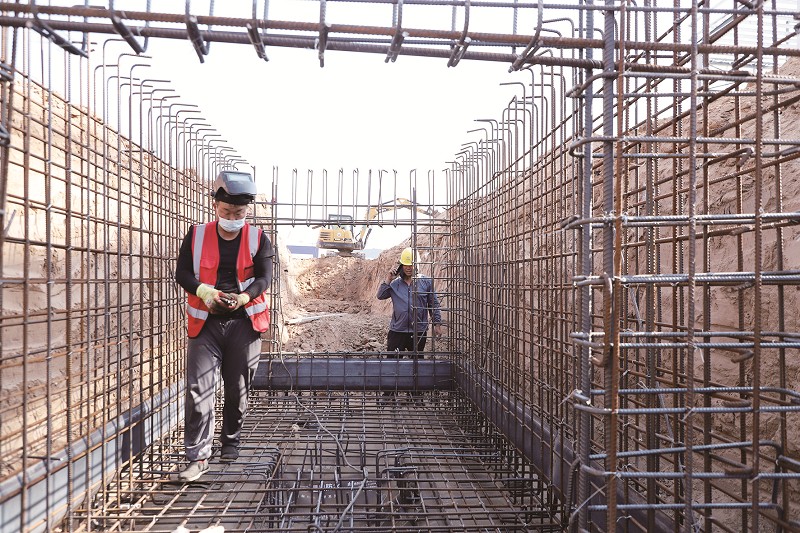 走进施工现场,40多名施工人员和多台施工车辆各司其职,建成的箱涵已经全部埋入地下。在电力管沟前,挖掘机伸展巨臂将土方缓缓挖出,工人们身穿醒目的安全服,有的操作机械,有的检查管沟铺设情况,彼此配合默契。“目前,箱涵工程已经全部完工,电力管沟施工已经完成80%,预计6月初将全部完成,为路基填筑打好基础。”现场施工负责人介绍,当前天气炎热,施工现场存在高温、干燥引起的中暑风险,为做好施工现场的防暑降温工作,项目部科学合理安排作业时间,错峰施工,避免高温曝晒、疲劳作业。同时,管沟开挖前,项目部组织技术员对挖机操作人员及现场施工人员进行详尽的技术与安全交底,确保施工安全有序。