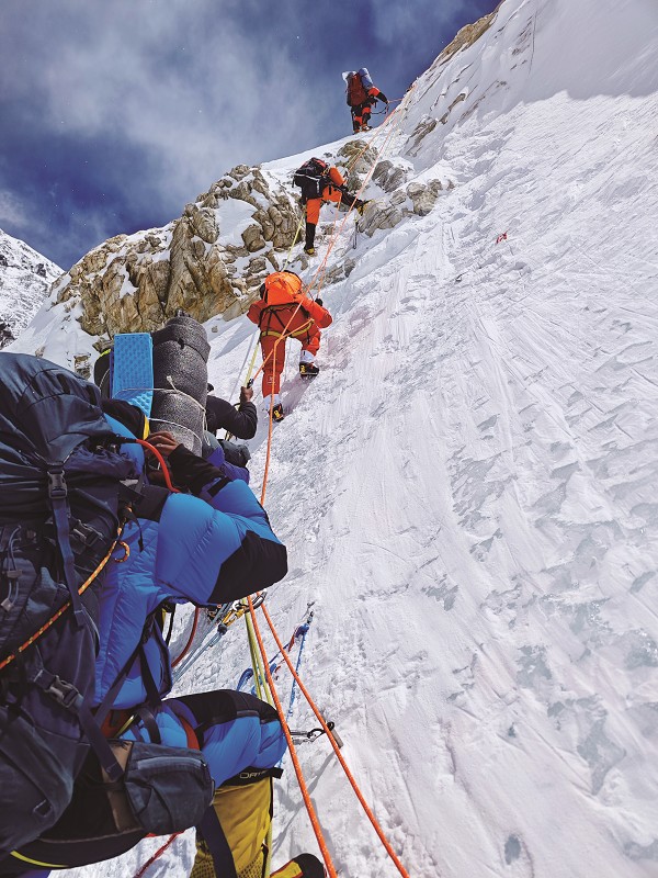 缺氧如影随形,风雪贴耳而来,冰崩声在山谷间隐隐回响,艰险与疲惫不断袭来,但尹云锋从未想过放弃。“选择晚上冲顶是因为珠峰的气候条件非常苛刻,下午1时后可能出现暴风雪、大风等极端天气,增加攀登难度和危险性。同时夜间气温较低,雪层较为稳定,有利于快速爬升。”尹云锋说。