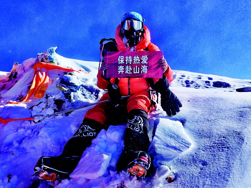 在珠峰之巅,尹云锋展开国旗及“保持热爱,奔赴山海”的手拉旗,那不仅是一句登山口号,更是他送给学弟学妹们的青春寄语。“这次攀登前,我和人大登山队老队员及现任队长交流过,登顶后老队员把我登顶珠峰的消息转到微信群内,大家都对我表示了祝贺。”尹云锋说。