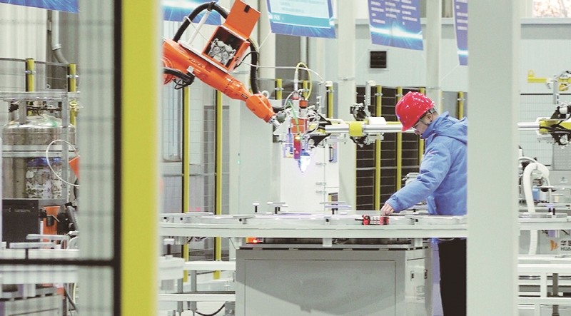 潞安化机新能源装备分公司是“晋华槽”研制的关键单位。在新能源装备分公司车间,各条全自动作业生产线平稳运行。工作人员站在控制设备前轻点鼠标,翻转机、焊接机、焊缝气密检测机便会有条不紊地生产电解槽。