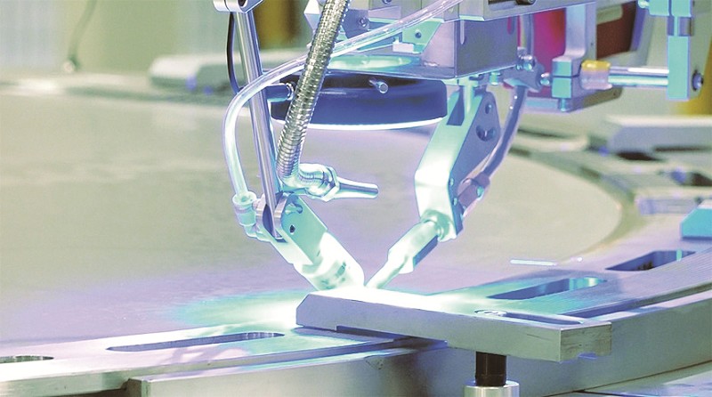 5月15日,记者走进潞安化机新能源装备分公司车间,涂胶机器人快速挥舞着机械臂,发出“嘶嘶”的声音,将液体瞬干漆涂抹到极板流道槽的位置。