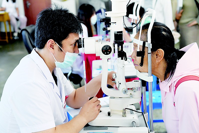 为全面了解现场老年人的眼健康状况,北大医院太原医院眼科团队携带专业的设备为老年人进行了视力和眼部检查。检查发现,相当一部分老年人存在散光、白内障等眼健康问题。“大夫,我的白内障现在需不需要做手术?”63岁的谢阿姨视力检查左眼0.8,右眼也是0.8,因看东西不模糊,不确定该不该做手术治疗白内障。对此,医生建议,可以手术的情况下还是尽早手术,以免耽误病情。