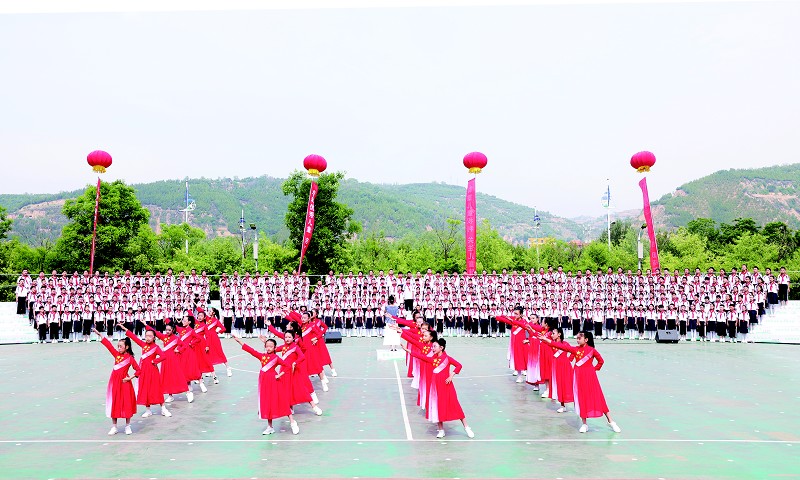 廉海平与袁家庄小学师生共庆“六一”