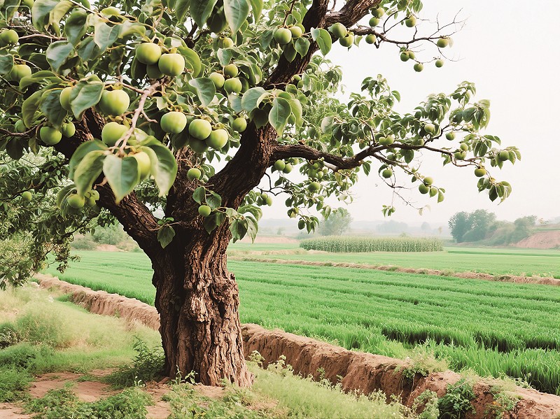 后来我离家赴省城工作,一年到头难得回去。偶尔想起那柿子树,也不过是饭后的闲谈,或是梦里的片段。最近这些日子因老屋南房漏雨,回去修缮,才有暇到地里一看。那柿子树竟还在,只是树干更显枯槁,枝桠稀疏,叶子黄瘦,显是多年无人照料了。树下杂草丛生,间或有几个干瘪的柿子落在地上,已被虫蚁啃食过半。
