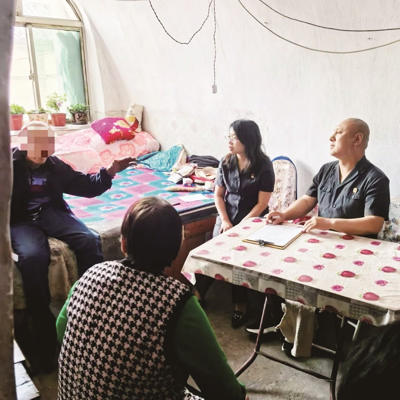 盂县法院执行局局长张素芳亲自带队,先到该村了解情况,后前往被执行人李某寿家实地走访,与李某寿及其家属面对面沟通,详细了解其家庭情况、实际想法以及对判决的疑虑,耐心倾听其诉求,释法说理。执行干警重点围绕生效判决依据,透彻阐释该案主要证据《勘察定界报告》的证明效力,阐明土地权属归属及返还义务的法定性,并明确告知其拒不履行法律义务的后果,强化其责任意识。
