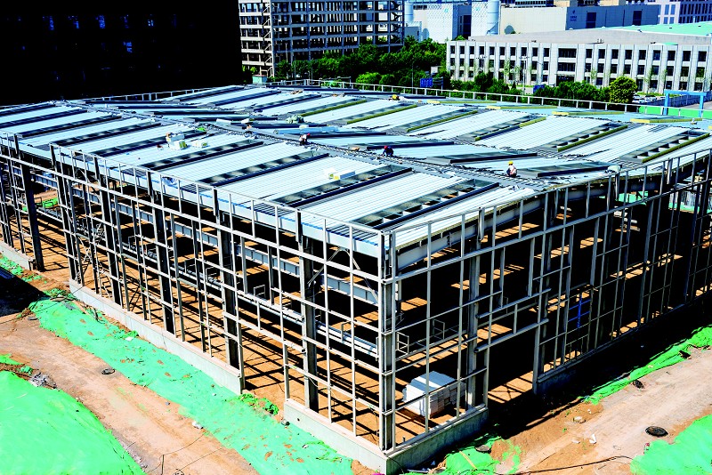 该项目总规划建筑面积约2.88万平方米,包含5栋丙类厂房、1栋研发楼以及1栋大门建筑,建筑密度约40%,绿化率约16%。目前,7 栋单体建筑已全部实现封顶,其中4栋厂房和1栋研发楼已进入内部安装阶段。