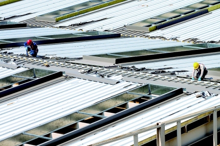 走进项目建设现场,大型装载机、塔吊等机械设备轰鸣着、挥动着“手臂”。建设者们头戴安全帽、身系安全带,有的在钢结构屋顶上熟练地安装,有的在操作混凝土浇筑设备,有的在搬运建筑材料,大家分工明确、各司其职,专注于手中的工作,用辛勤的汗水和不懈的努力推动着项目的高速建设。