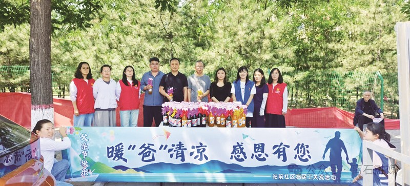本报讯有一种爱,叫父爱如山;有一颗心,叫父子(父女)连心;有一份情,叫情深似海;有一个节日,是父亲节。6月13日,离石区城北街道站前社区开展“暖‘爸’清凉感恩有您”父亲节慰问农民工活动。