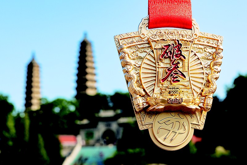 本次赛事首次为全程马拉松项目中跑进3小时的选手,定制专属“破叁”荣誉勋章。该勋章以“三晋破三”为主题,融合太原地标性建筑和多种传统纹样,展示三晋大地、表里山河的独特魅力。同时,欢乐跑与健康跑组别今年首设完赛奖牌(金色为全程、银色半程、铜色欢乐健康跑),延续乙巳蛇年生肖奖牌传统。2025年奖牌设计灵感源自“古晋阳八景”之一的“双塔凌霄”。