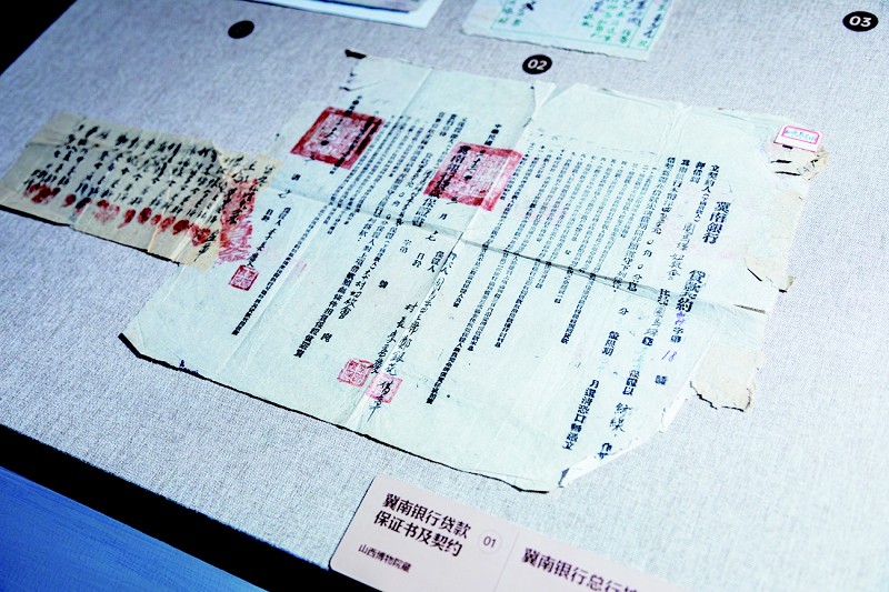 十几张冀南银行不同时间发行的纸币,面值从壹角到伍佰元不等,大小各异,见证了红色金融事业的发展。冀鲁豫根据地粮食生产困难,冀南银行发放低息惠农生产贷款,帮助农民恢复生产,“冀南银行贷款保证书及契约”便是生动体现。“揭穿敌破坏我金融阴谋展开反假票斗争打击肃清假票的紧急指示”,展现出根据地保护金融系统正常运行的决心。此外,《晋冀鲁豫边区统一累进税暂行税则》手稿,为根据地合理征税提供了依据,保障了财政收入;晋冀鲁豫边区生产建设公债临时收据,体现了根据地通过发行公债筹集资金支持抗战;定期抵押放款借券等文物,反映了根据地灵活的金融政策。一张张穿越烽火岁月的票据纸张,呈现出晋冀鲁豫抗日根据地红色金融事业的波澜壮阔。