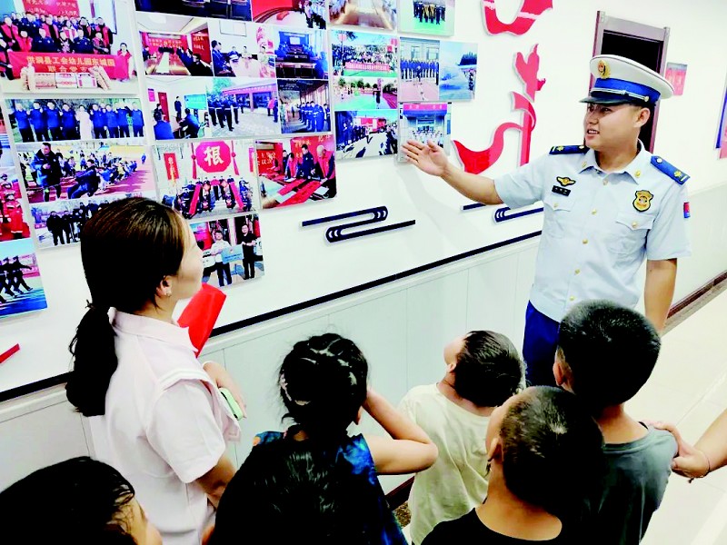 晋中市消防救援支队为孩子们打造了一个看得见、摸得着、学得会、记得住的消防安全启蒙课堂。孩子们走进消防站,触摸威武的消防车、试穿厚重的战斗服,变身“小小消防员”!在消防员叔叔的指导下,握一握水枪,感受水流的力量;学一学结绳技巧,掌握逃生基本功。结合消防器材,消防员还讲解了家庭隐患查找、火灾报警要点。