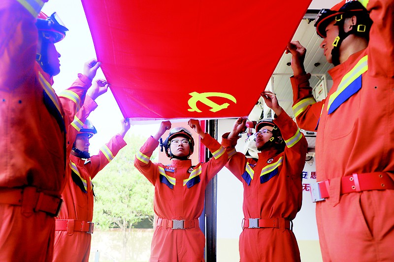 为庆祝中国共产党成立104周年,重温党的光辉历程,连日来,运城市芮城县消防救援大队精心策划了“我与党旗合影”活动。画面中,每一位消防救援人员脸上都洋溢着自信与坚定的微笑,他们身姿挺拔,以良好的精神面貌面对鲜红的党旗,与党旗亲密合影。这一张张照片,定格的不仅是瞬间,更是他们感党恩、跟党走、守初心、担使命的信心和决心,充分展现出新时代消防救援队伍的风采。