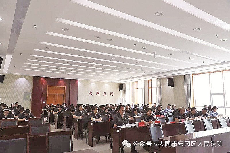 云冈区法院党组书记、院长刘保平以《纪律标尺丈量司法初心》为题,为全院干警讲授专题党课。