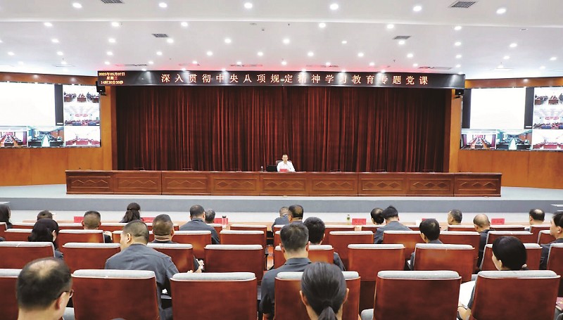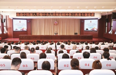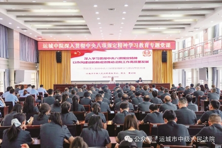 太铁法院(山西转型综改示范区法院)党组书记、院长王迪围绕中央八项规定精神的背景要求和重大意义、开展深入贯彻中央八项规定精神学习教育的目标任务和学习重点以及如何深入贯彻中央八项规定精神学习教育走深走实等三个方面为全院干警讲授专题党课。