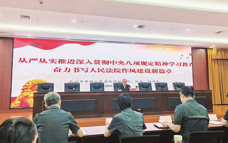 长治中院党组书记、院长杨泽民以《从严从实推进深入贯彻中央八项规定精神学习教育,奋力书写人民法院作风建设新篇章》为题,从四个方面,全面阐述了开展深入贯彻中央八项规定精神学习教育的重大意义。