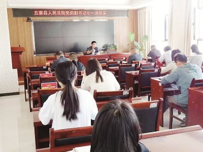 陵川法院党组书记、院长杨小斌以《在持续深化作风建设中践行初心使命》为题,为全院干警带来了一场意义深刻、内容丰富的专题党课。