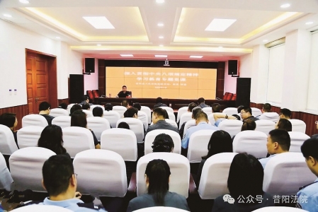 昔阳法院党组书记、院长师磊以《深悟中央八项规定以作风之坚筑复兴之基》为题,为全体干警讲授专题党课。