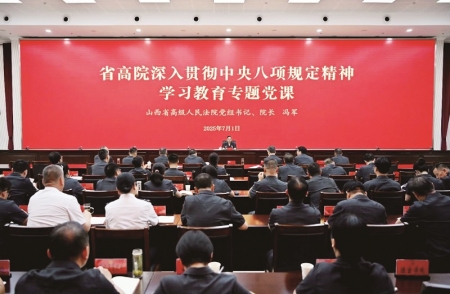 根据深入贯彻中央八项规定精神学习教育的安排部署,山西三级法院的党组书记、院长纷纷讲授专题党课,认真学习领会习近平总书记关于加强党的作风建设的重要论述,推动学习教育走深走实,为山西法院工作高质量发展提供坚强作风保障,为全面推进中国式现代化山西实践作出法院贡献。