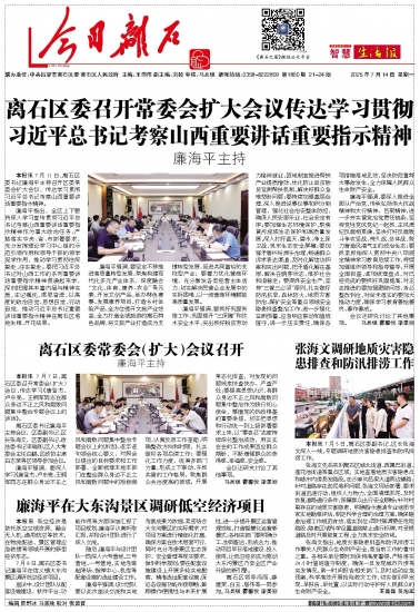 离石区委召开常委会扩大会议传达学习贯彻 习近平总书记考察山西重要讲话重要指示精神