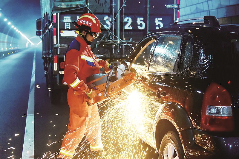 接到报警后,支队立即启动高速公路隧道灭火救援预案,调派辖区6车前往处置。消防救援队伍到达事故现场后,侦察小组立即对现场火情进行勘查,根据现场火情,灭火小组熟练铺设水带干线、连接消防机器人,对火势进行压制;救援小组利用专业的救援设备争分夺秒地对事故车辆进行破拆,将被困人员成功救出,迅速交由医疗部门送往医院救治。确认火势被完全扑灭且无复燃风险后,消防救援人员对现场进行了细致检查和清理。 (张彦 乔晓红)