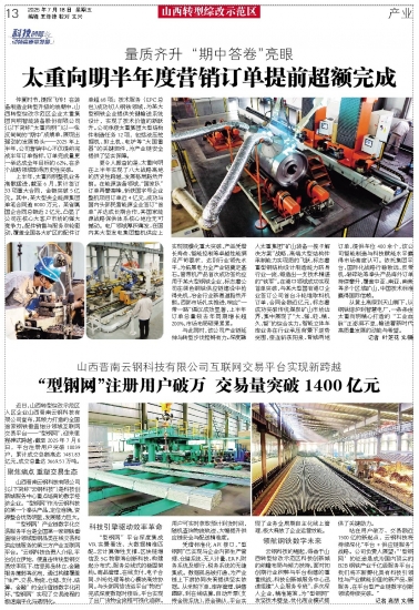 太重向明半年度营销订单提前超额完成