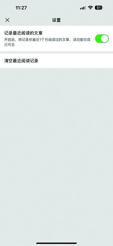 3.在“赞和收藏”/“最近阅读”界面,点击右上角的“···”,页面跳转,打开“记录最近阅读的文字”的按钮并返回上一界面,点击“赞和收藏”即可查看点过赞和收藏的文章;点击“最近阅读”即可查看近段时间阅读过的文章。