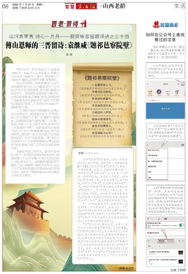 傅山恩师的三晋留诗:袁继咸《题祁邑察院壁》