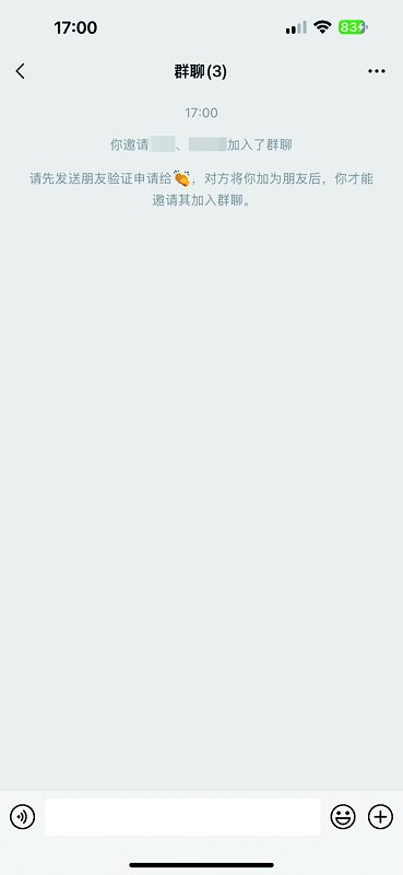 3.群聊建立成功后,如果出现 “请先发送朋友验证申请给……”的提示,则表示已被对方删除。