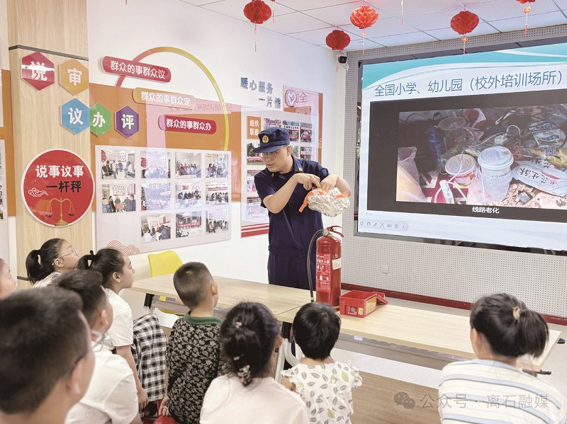 本报讯 近日,离石区消防救援大队分别深入离石区莲花池街道兴南社区、离石区凤山街道文昌路社区、滨河街道城东社区暑期托管班,开展消防安全教育活动,全力守护社区暑期消防安全。